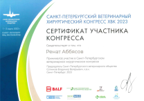 - Участник Санкт-Петербургского ветеринарного конгресса (ХВК), 2023 и 2025 год.