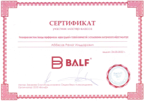 - Мастер-класс по регионарной анестезии. Блокады периферических нервов грудной и тазовой конечности с использованием электрического нейростимулятора. ОЦ Бальф, 2022 год.
