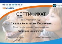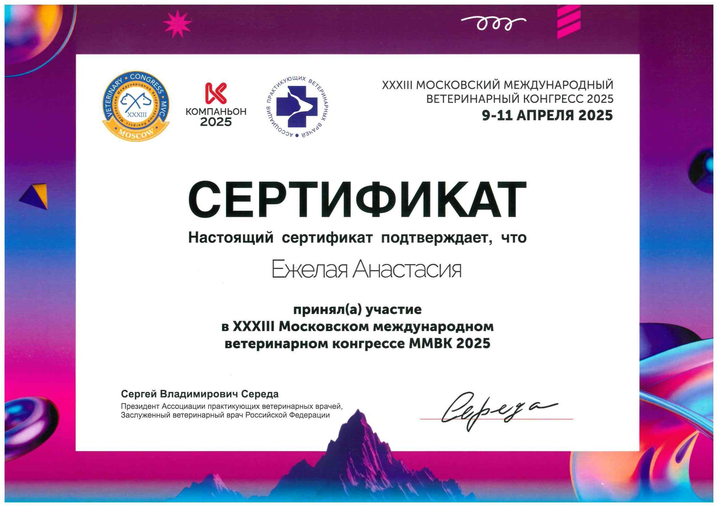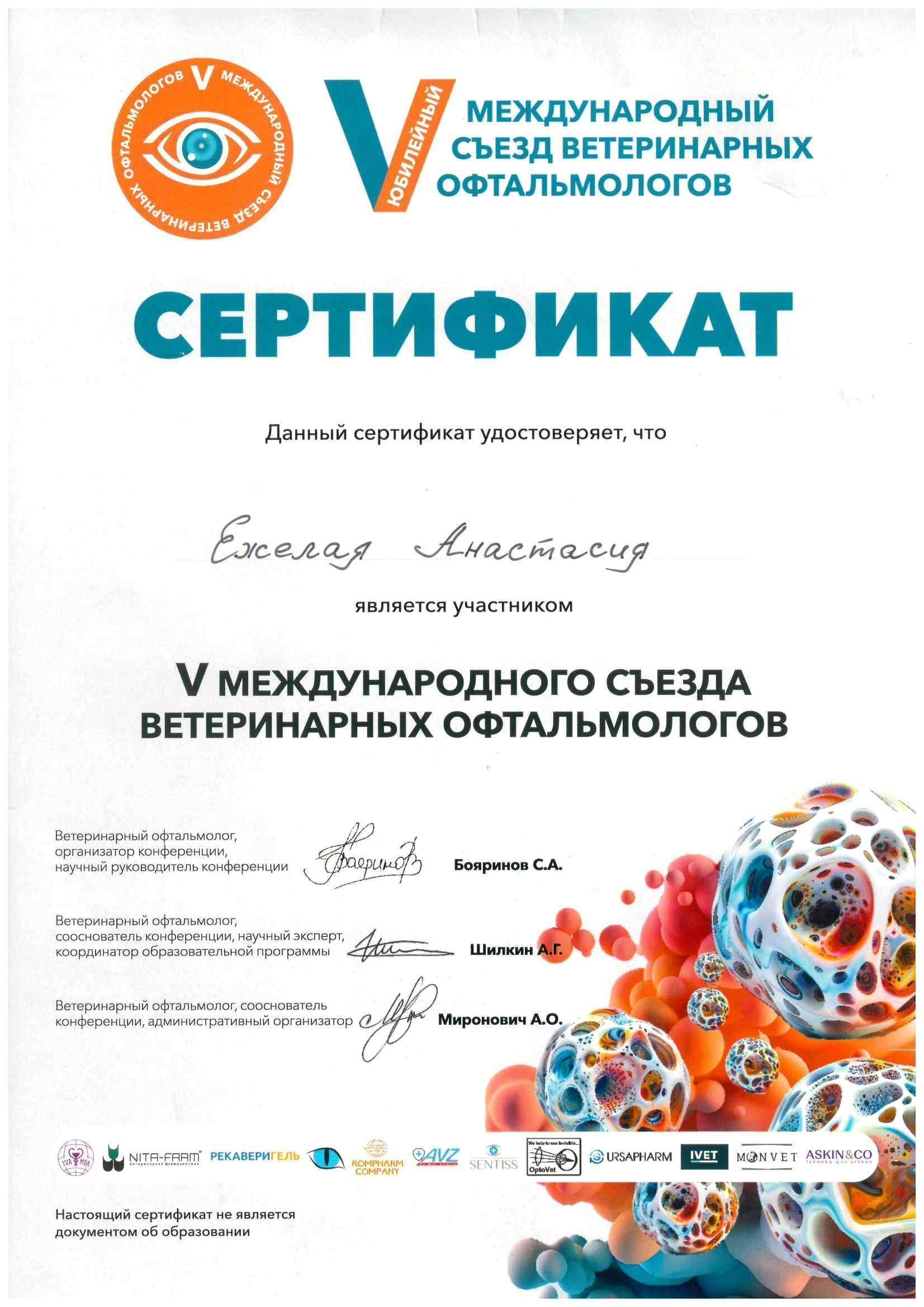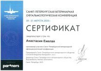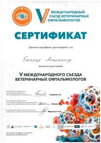- 2024 г. - Национальная Ветеринарная Конференция, г. Москва, секция "Офтальмология"