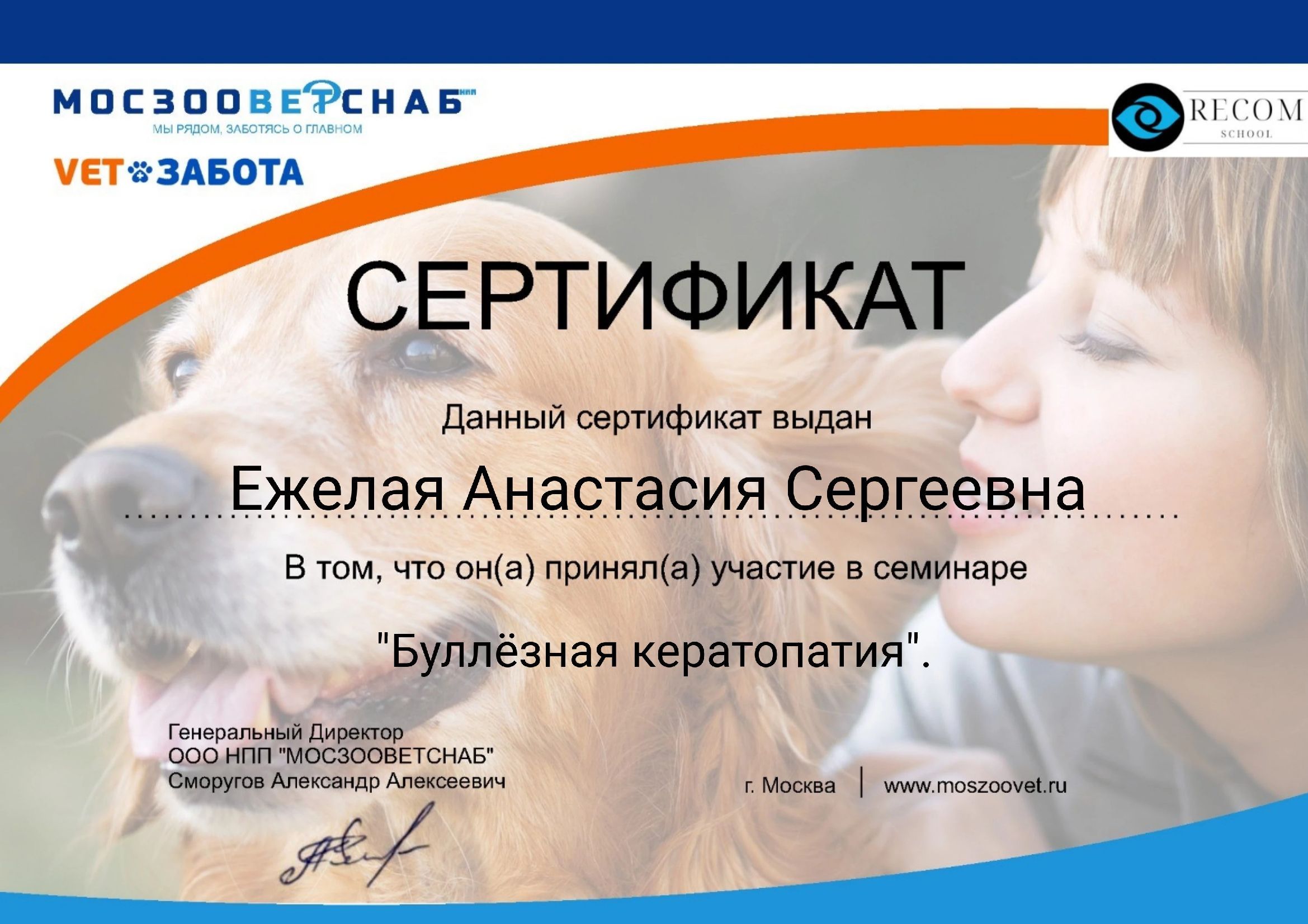 Ветеринарный врач-офтальмолог МВЦ "ДваСердца"Опыт работы с 2015 г.