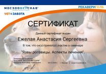 - 2022 г. - Тренинговый курс «Эффективная коммуникация с клиентом в практике ветеринарного врача»