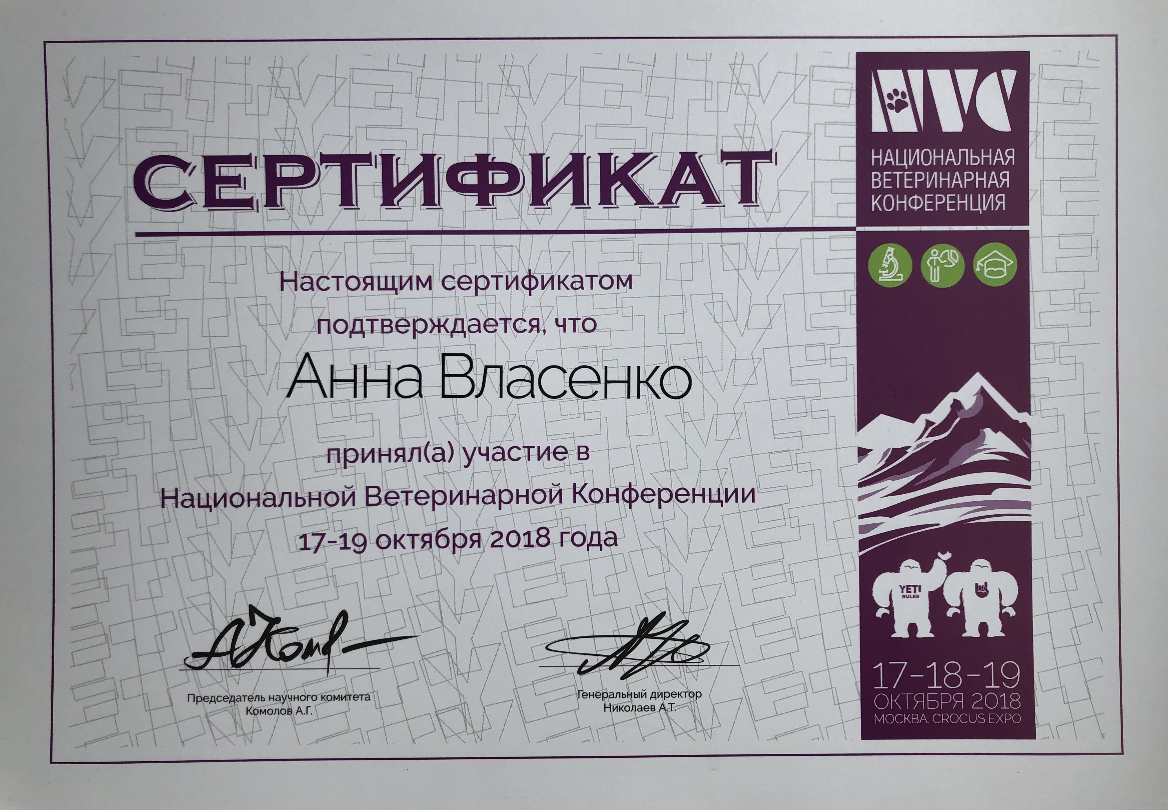 - Международный съезд ветеринарных офтальмологов, МВА, Москва, ежегодно