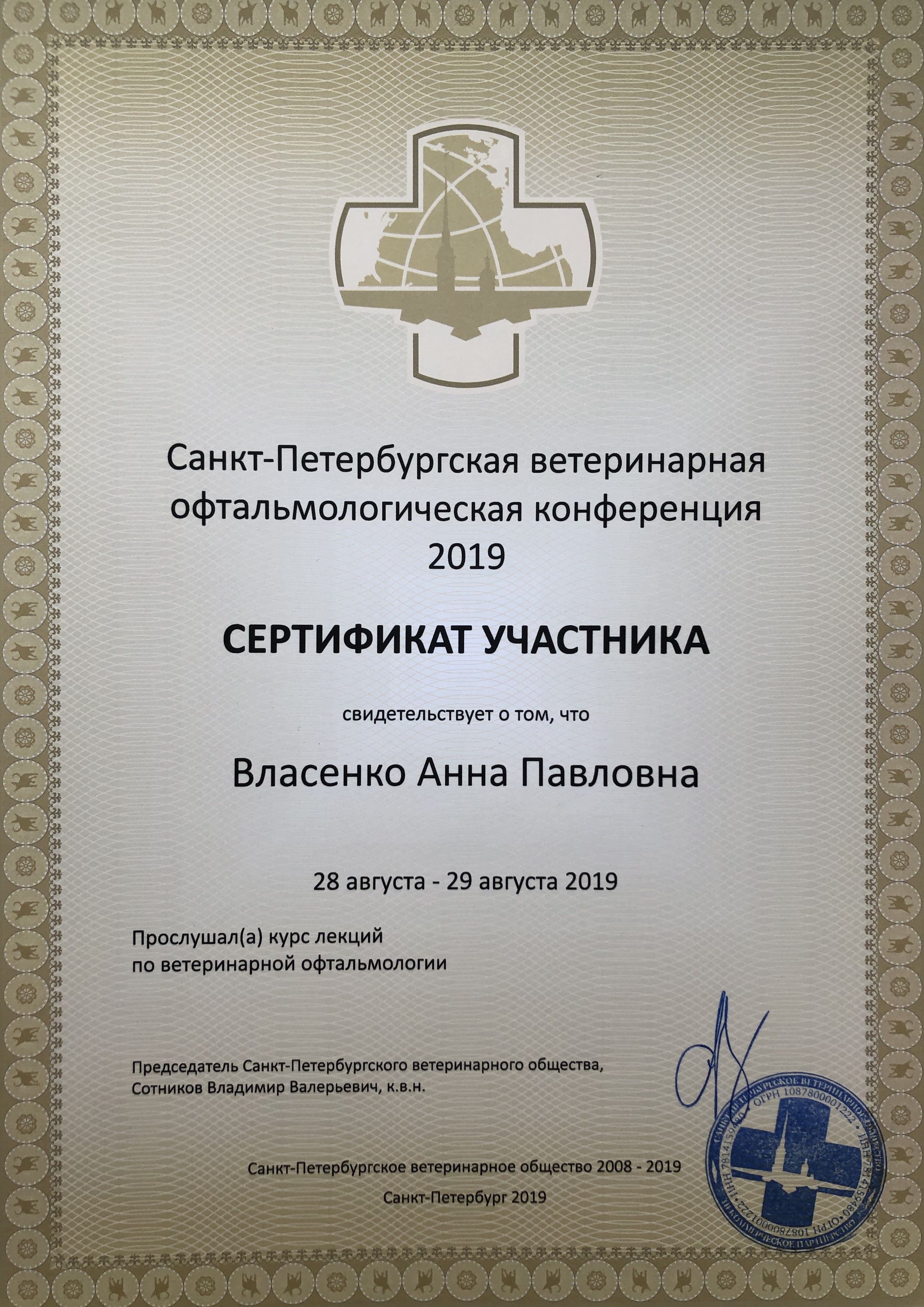 - Санкт-Петербургская ветеринарная офтальмологическая конференция, СПбВО, ежегодно